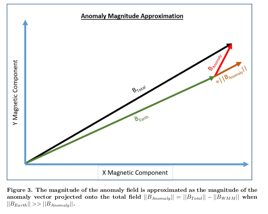\(|B_\mathrm{anomaly}|\) is the projection of \(\vec{B}_\mathrm{anomaly}\) onto \(\vec{B}_\mathrm{Earth}\)