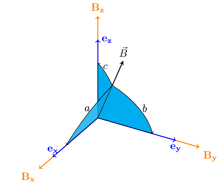 \[ \begin{align*} DC_x = \arccos{a} &= \frac{B_x}{\sqrt{B_x^2 + B_y^2 + B_z^2}}\\ DC_y = \arccos{b} &= \frac{B_y}{\sqrt{B_x^2 + B_y^2 + B_z^2}}\\ DC_z = \arccos{c} &= \frac{B_z}{\sqrt{B_x^2 + B_y^2 + B_z^2}} \end{align*} \]